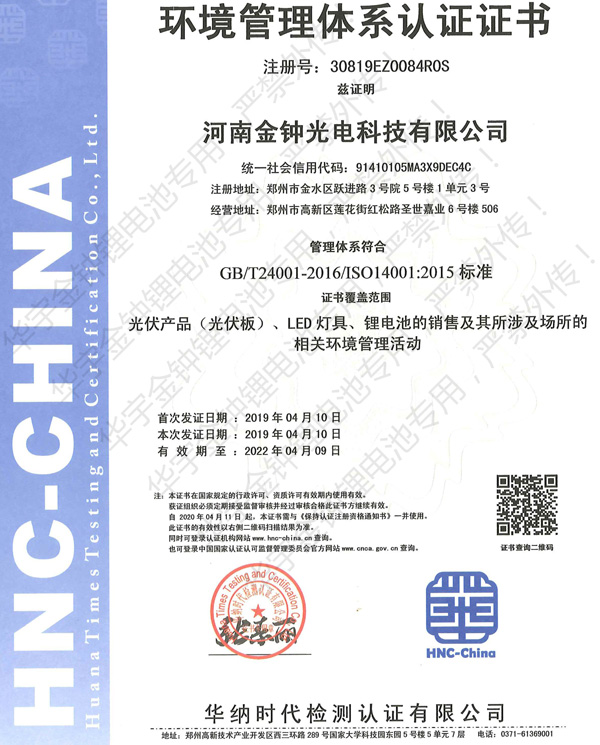 河南金鐘光電科技有限公司是專業(yè)鋰電池制造商,主要生產(chǎn)換電鋰電池,三輪四輪車鋰電池,游樂設(shè)備鋰電池,電動平車鋰電池以及各種定制化鋰電池,可以為客戶提供從電芯、電池模組到動力鋰電池在內(nèi)的完整系列產(chǎn)品,充分滿足客戶的需求。 從太陽能儲能電站,再到電動車鋰電池和各種定制鋰電池,金鐘光電在新能源領(lǐng)域不斷努力,不斷精進,截止2023年新能源鋰電池產(chǎn)品已經(jīng)服務(wù)客戶超過1萬家,產(chǎn)品定制達20萬套,公司擁有各種專利40余項,通過了質(zhì)量管理體系,職業(yè)健康安全管理體系,環(huán)境管理體系認證,是鄭州市科技型企業(yè),國家級科技型企業(yè),國家級創(chuàng)新型企業(yè),國家級高新技術(shù)企業(yè),并于 2024年底通過了專精特新企業(yè)稱號。